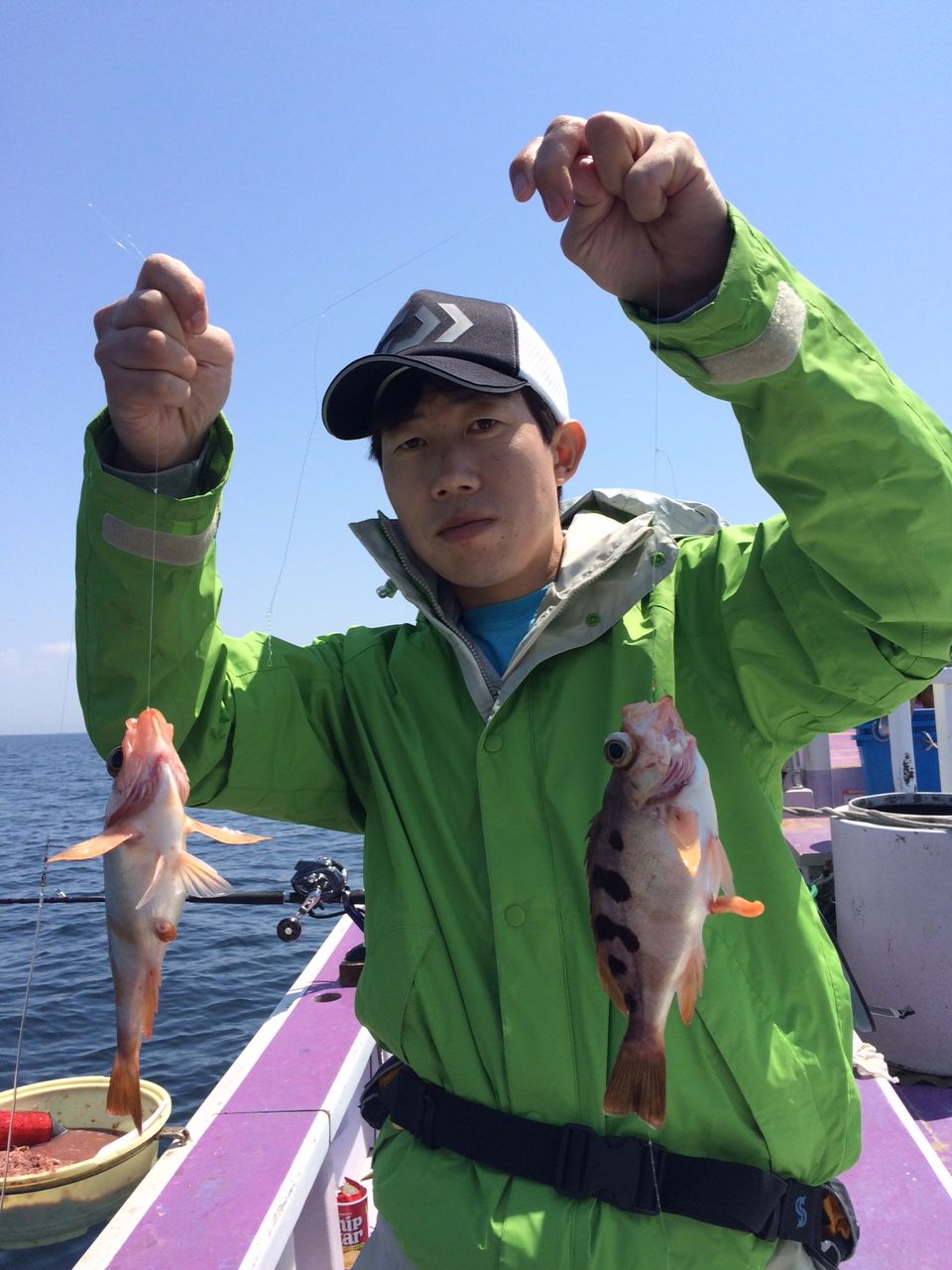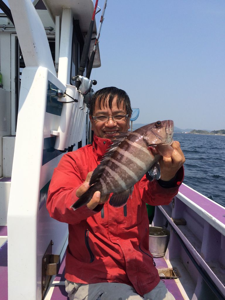2015年04月26日 タイ五目~沖メバルのリレー釣り 朝はタイを狙いましたがタイの顔は見れず、メジナ、タカノハダイが釣れました。デカアジは今日も好調で3点掛けなども出てお土産になりました。その後沖メバルを狙いに行き、良型の沖メバルが一家で釣れ、好調でした。