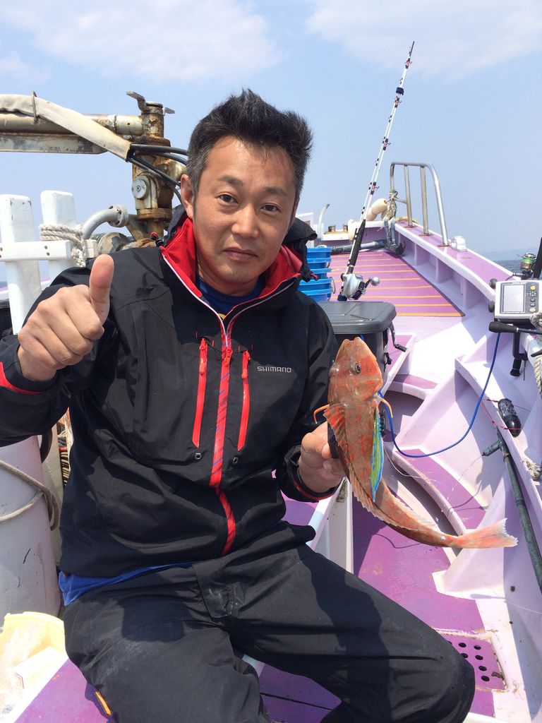 2015年04月25日 タイ狙い~ヒラメのリレー 今日も渋い感じでしたが小鯛が一匹顔を見れました。相変わらずデカアジは好調でお土産になりました。 後半ヒラメ、幸先よくデカオニカサゴが釣れ、ホウボウ、マハタなどもあがりましたが、ヒラメの顔は見れませんでした。