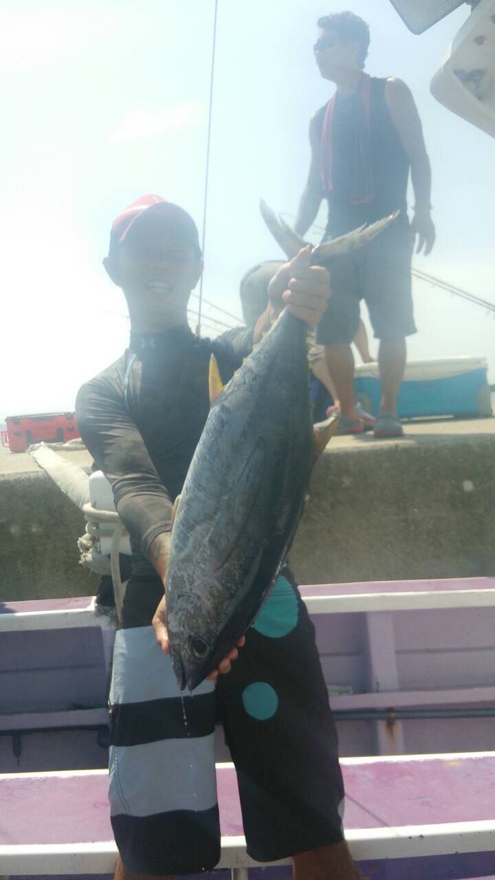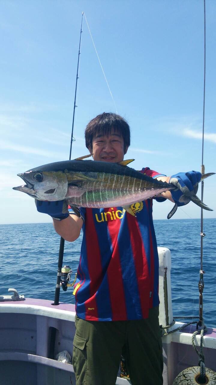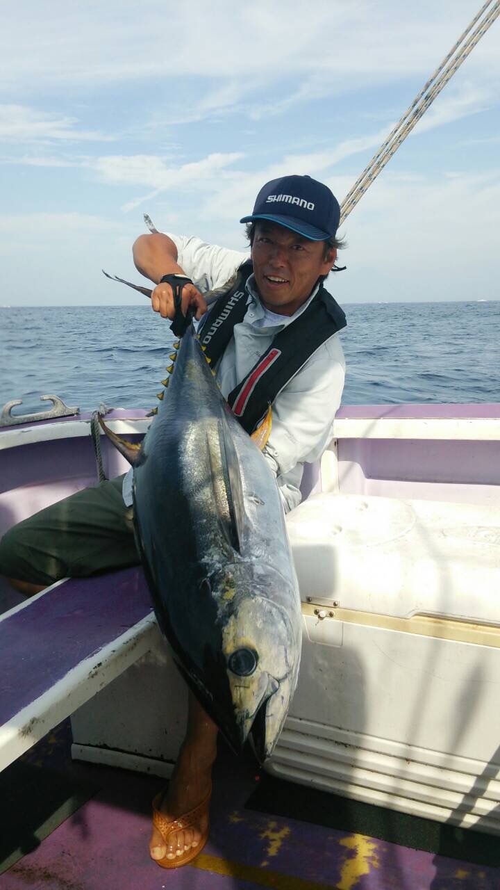 2015年07月25日 キハダ マグロ 今日も朝から激アツ、ナブラに投げればルアーに出る感じで2船合計で20回以上ルアーに出て一号船一本、2号船二本でした。合計でマグロ3本、メボ3本キメジが6本でした。