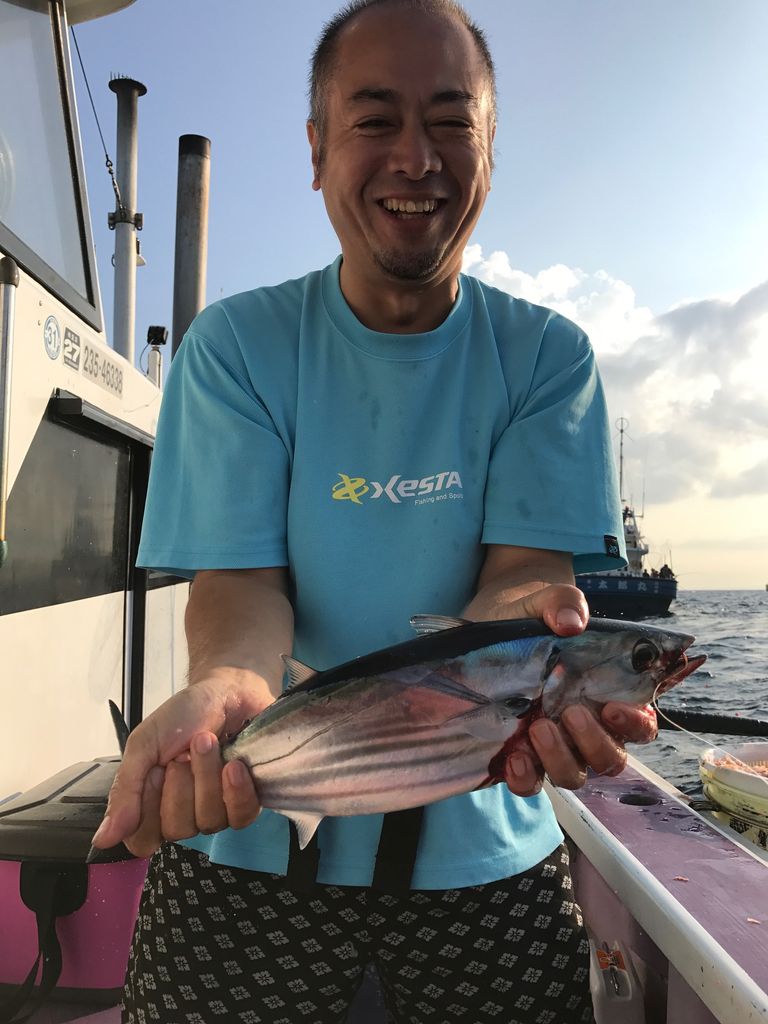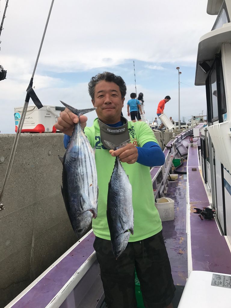2017年09月27日 ルアーマグロ、コマセマグロ 今日は朝からデカイ反応があったりしました。反応は見つかれば結構当たり良かったです。 1号船、デカカツオルアーでゲット、4.3キロありました。カツオのお土産もゲット。 2号船、カツオのお土産はゲットできましたがマグロはゲットならずでした。