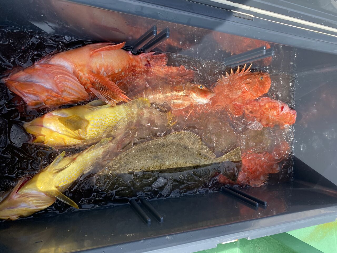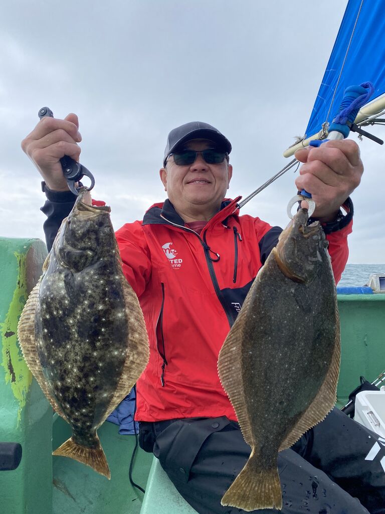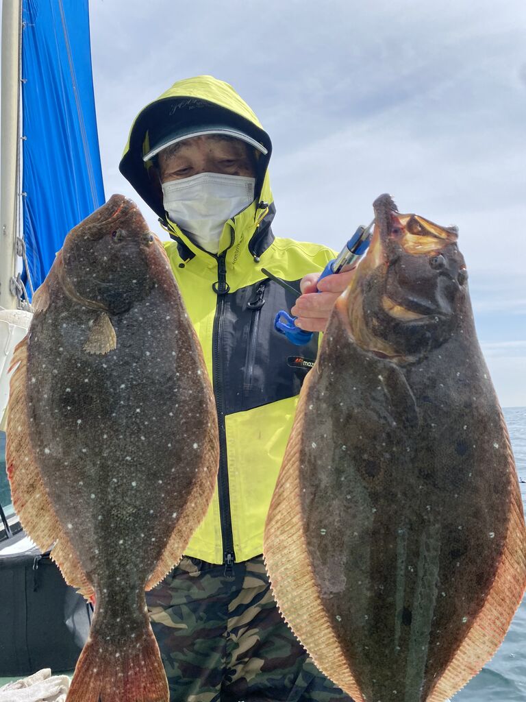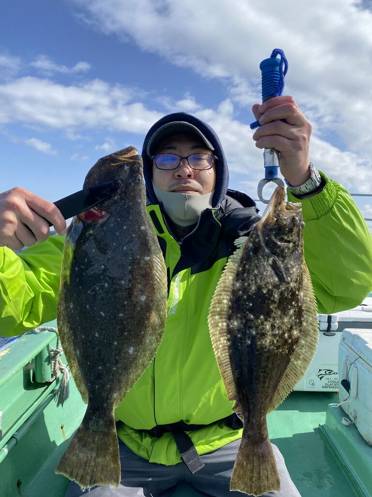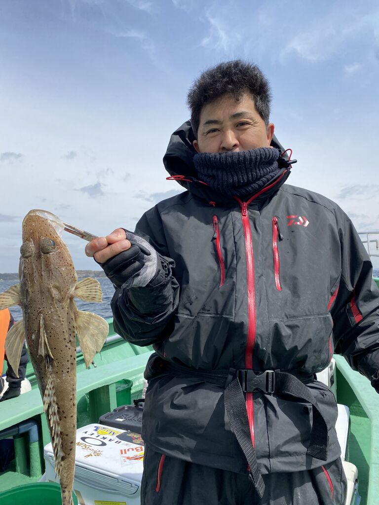 2022年03月27日 イワシの泳がせ 朝海悪く、うねりが残っていて、2時間くらい当たりなしでしたがだんだんと落ち着いてきたのかポツポツと当たり、ヒラメトップ3枚、2番手2枚でした。その他にオニカサゴ、アオハタ、ワニゴチなど釣れました。