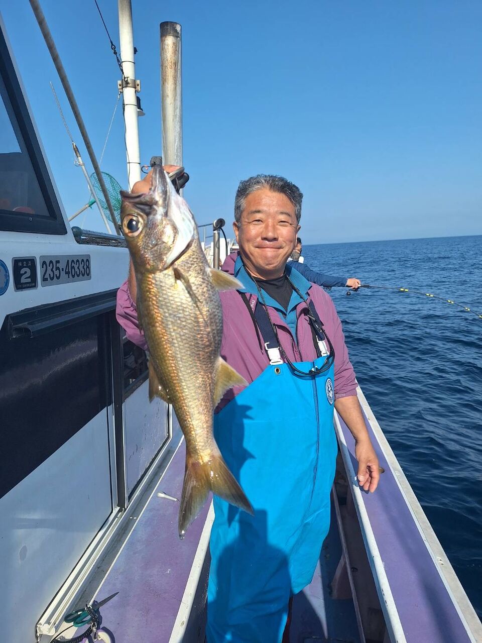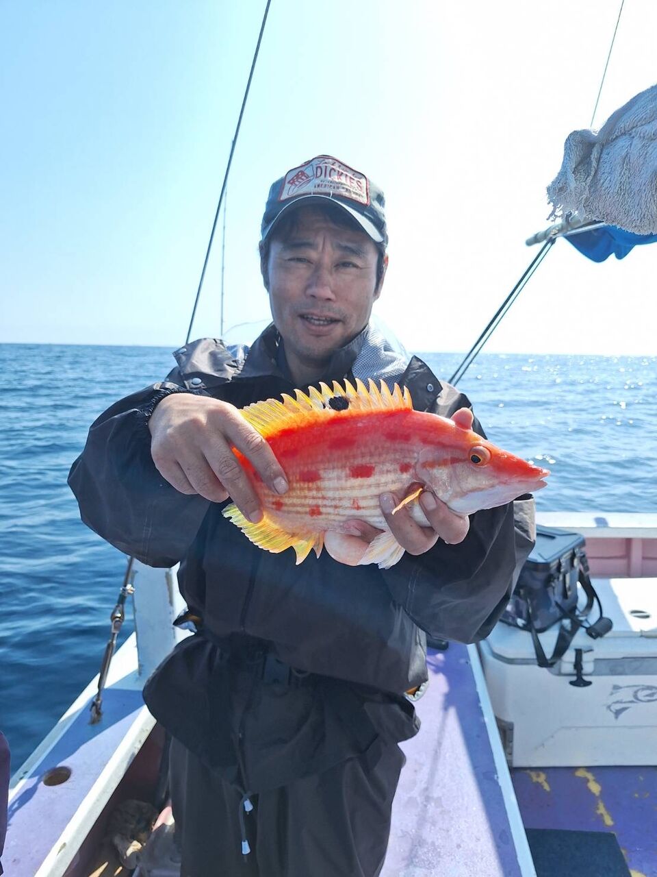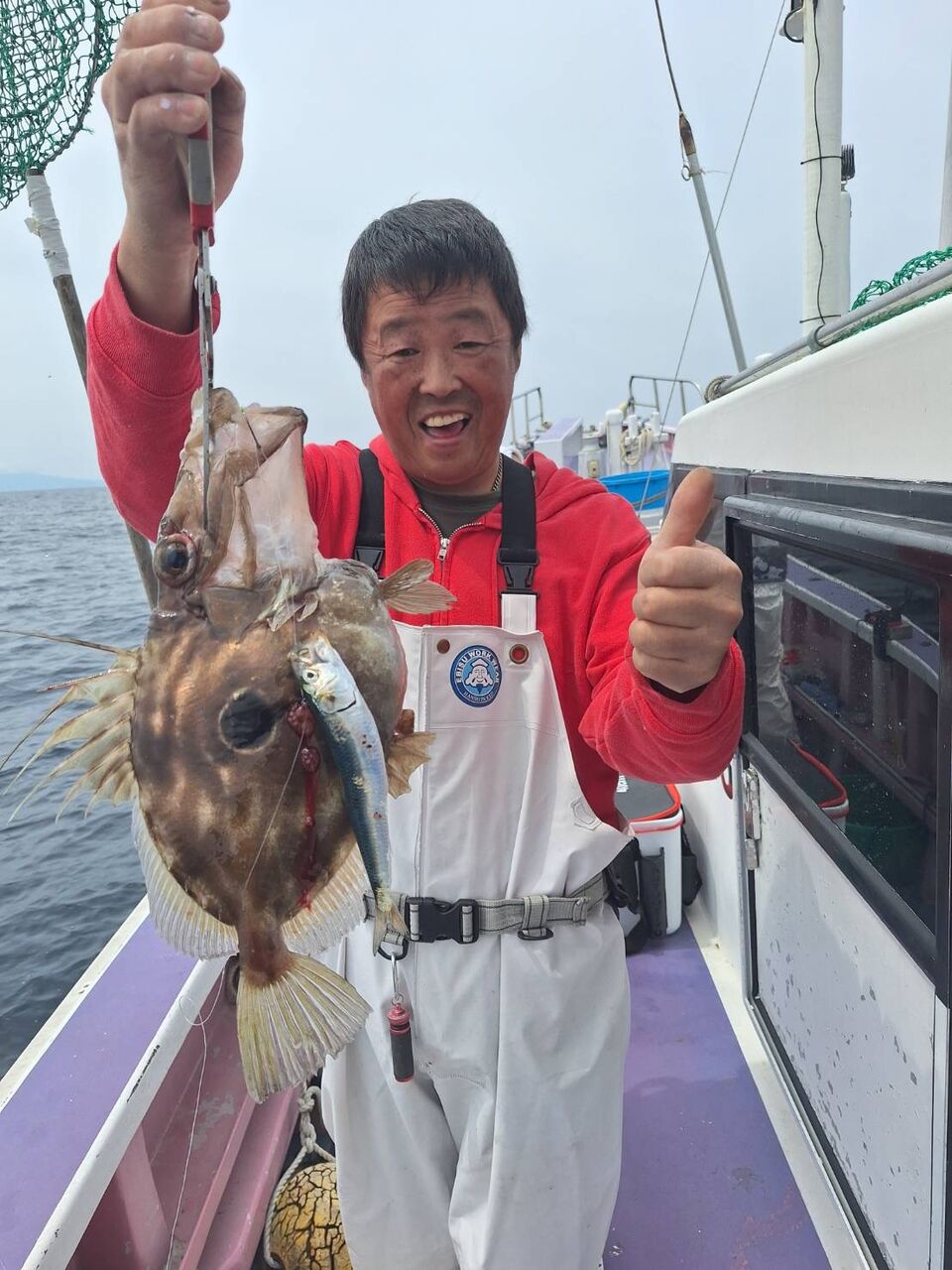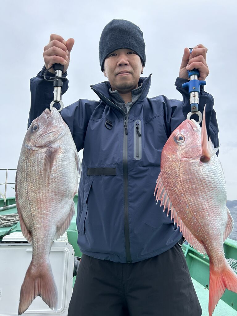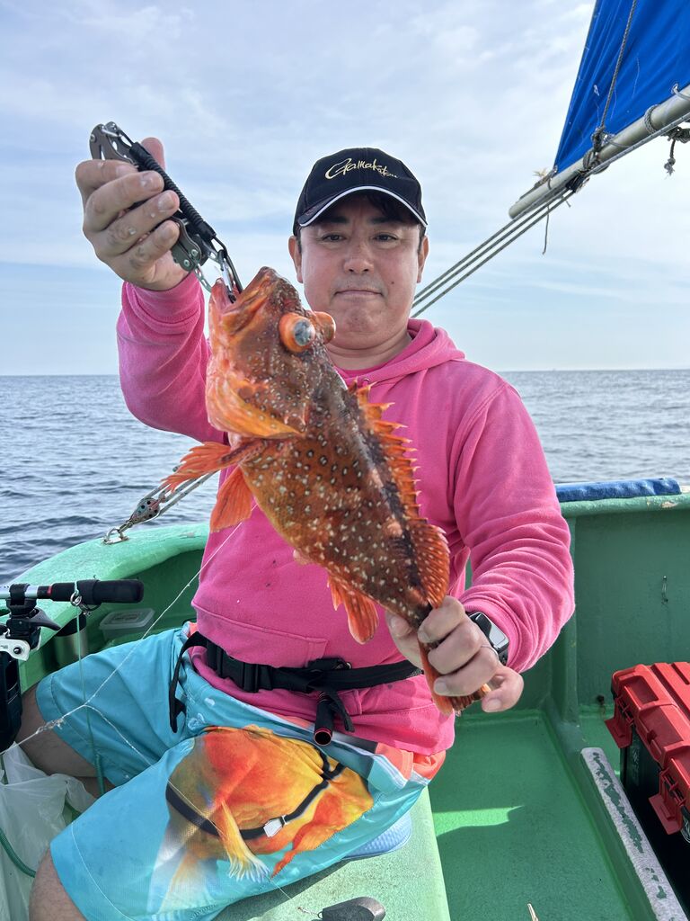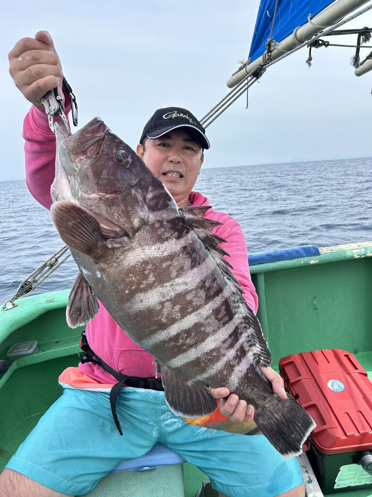 2024年04月29日 イワシの泳がせ2組 1号船、今日も沖へ向かい、今日は昨日よりもカンコポツポツと釣れ、カンダイ、マトウダイ、オニカサゴ、レンコダイ、など釣れました。2号船、今日はこちらも沖に向かい、ポツポツと1日当たり出てくれて、ヒラメ、マハタ、レンコダイ、ホウキハタ、カンコ、クロムツなど釣れました。マハタは4〜5キロありそうなデカマハタでした。
