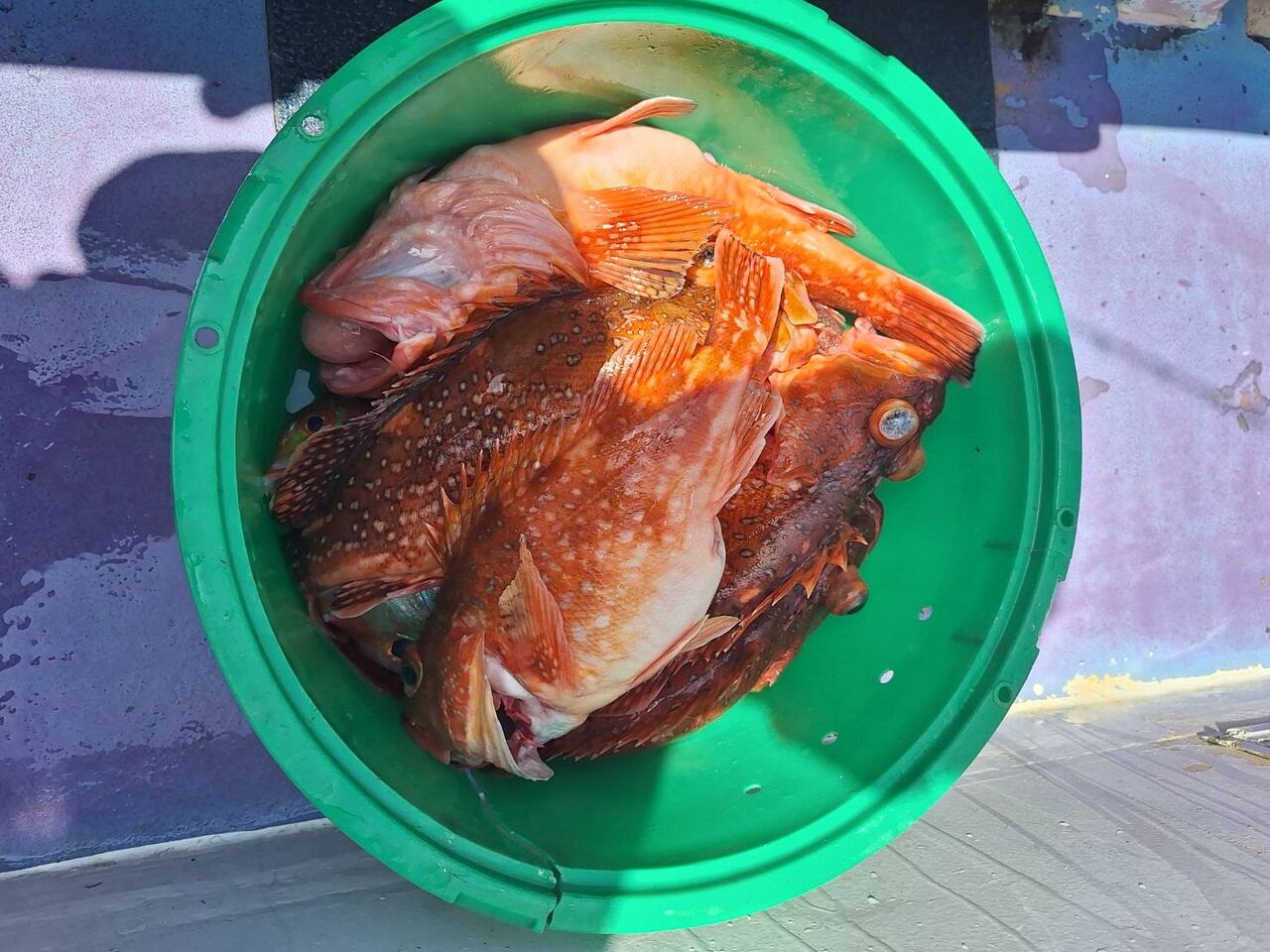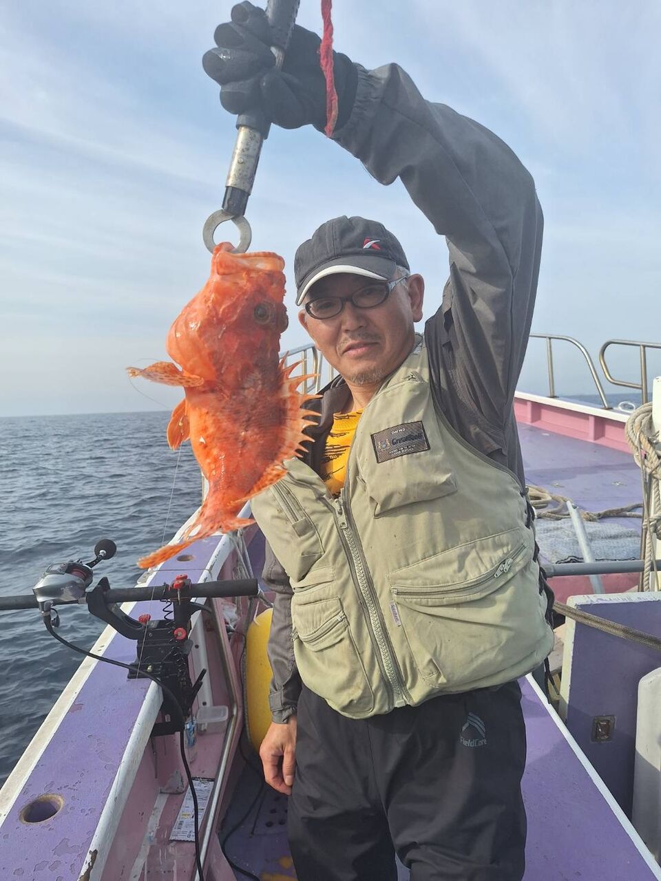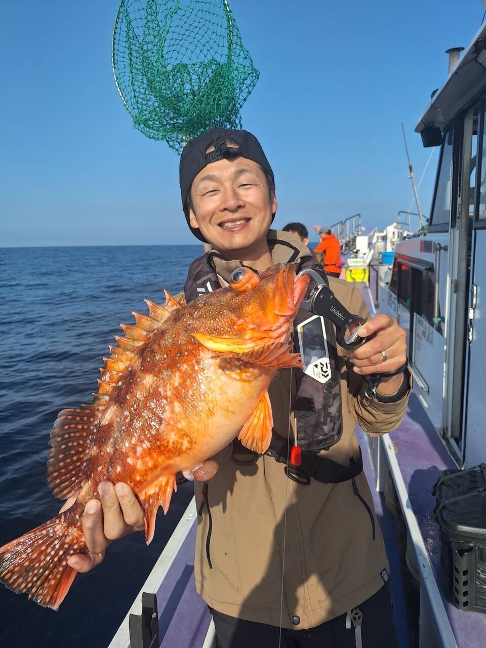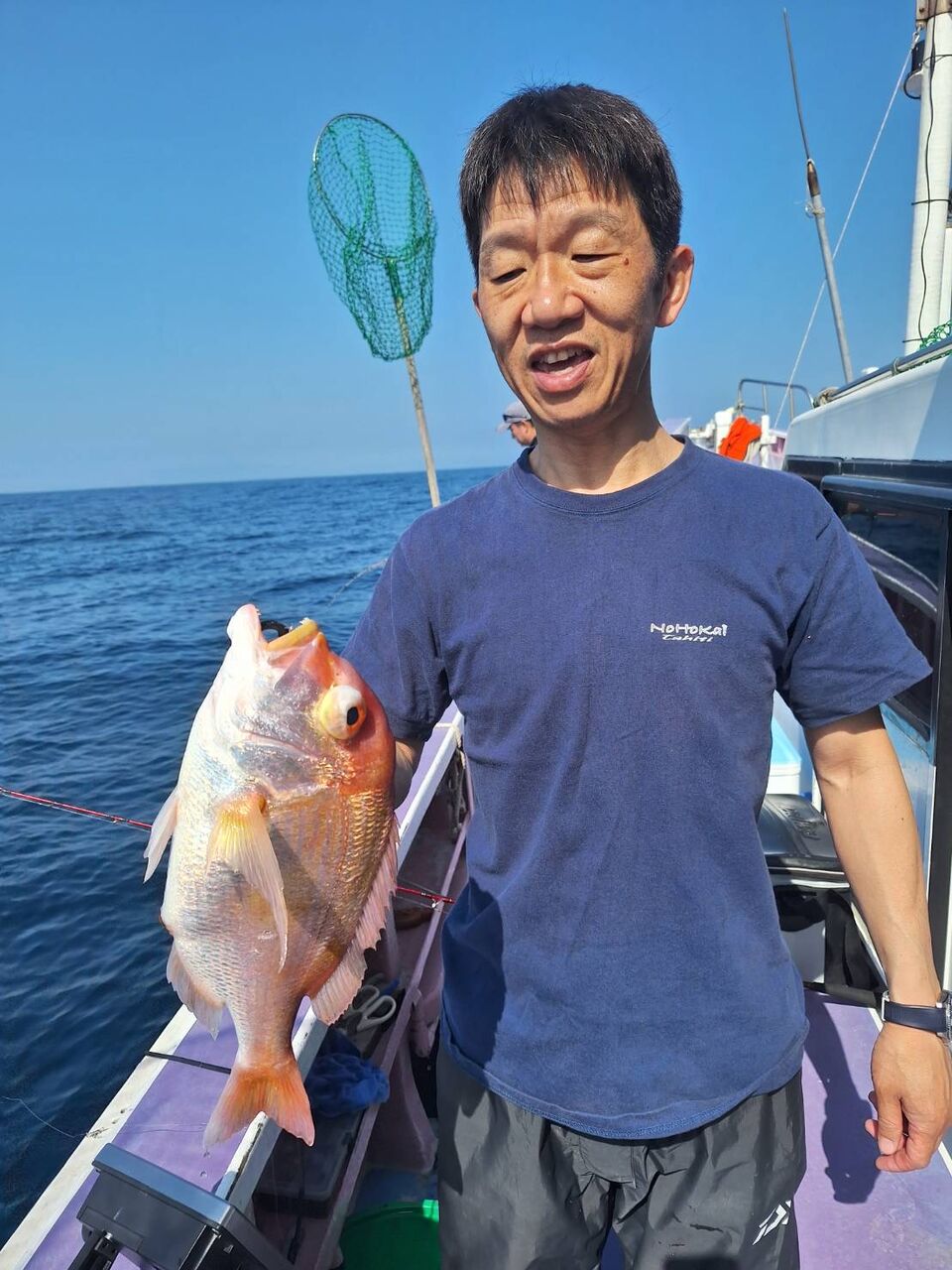 2024年04月29日 イワシの泳がせ2組 1号船、今日も沖へ向かい、今日は昨日よりもカンコポツポツと釣れ、カンダイ、マトウダイ、オニカサゴ、レンコダイ、など釣れました。2号船、今日はこちらも沖に向かい、ポツポツと1日当たり出てくれて、ヒラメ、マハタ、レンコダイ、ホウキハタ、カンコ、クロムツなど釣れました。マハタは4〜5キロありそうなデカマハタでした。