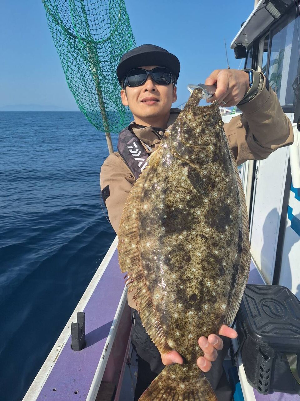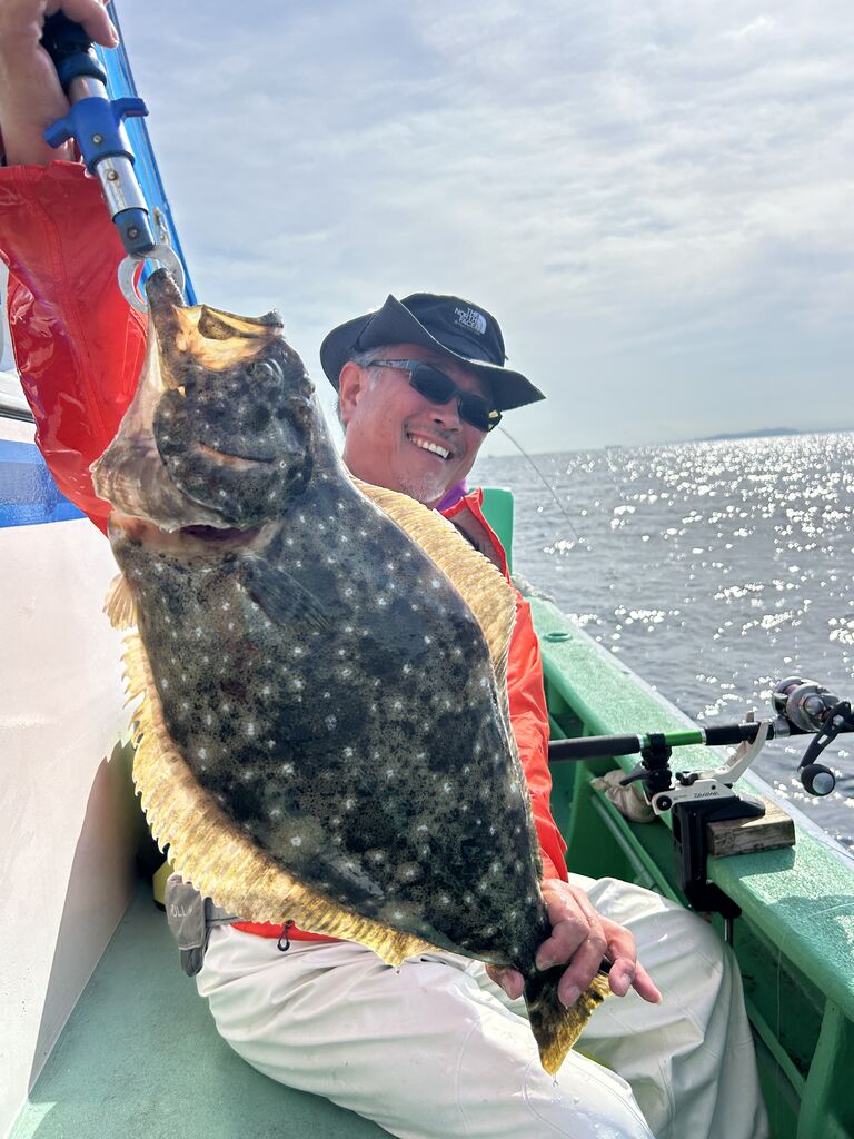 2024年04月28日 イワシの泳がせ2組 1号船、沖に行き、カンコ1〜7匹、ヒラメ、クロムツ、レンコダイ釣れました。2号船、近場を狙い、マハタ、キジハタ、オオモンハタ、バラゴチ、マトウダイ釣れました。