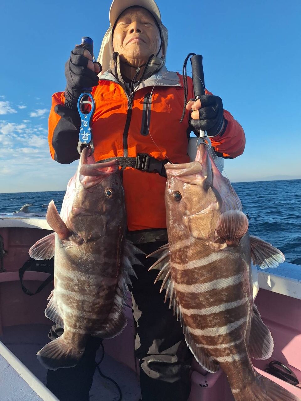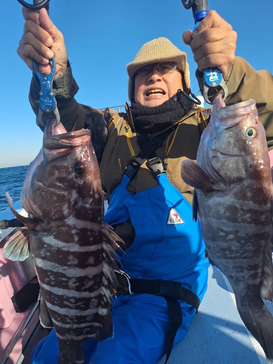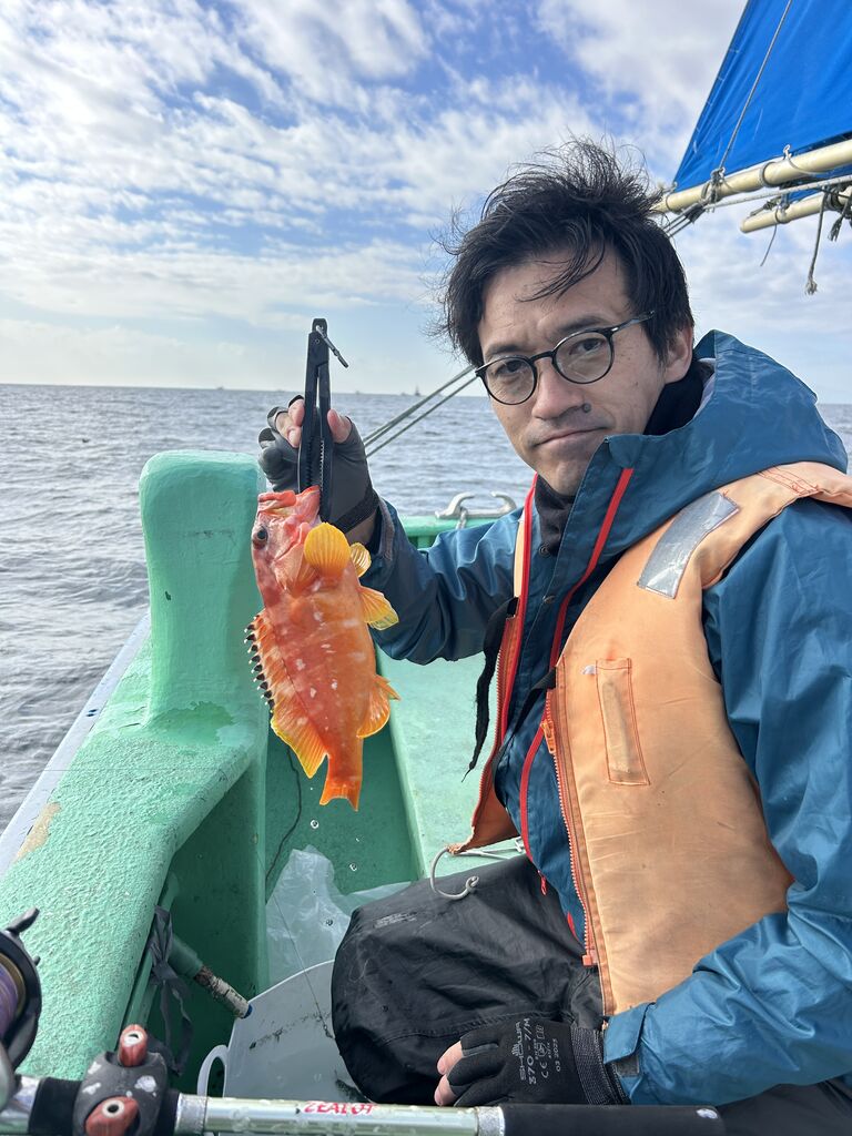 2025年11月10日 オニカサゴ、アマダイのリレー 今日も貸し竿の方多くうねりがある中頑張ってもらいオニカサゴ小さいながらに坊主なし、後半のアマダイもチビ主体でしたが、坊主なしでした。ゲストにマハタも釣れました